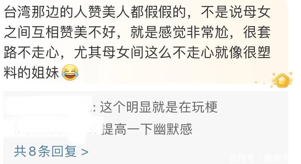 二犬子也很合营老母亲,直呼“谢谢S姐”,趁机吹捧母亲颜值高,嘉赞小S“好好意思、脸好小”。这种对话淌若暗里讲讲也就停止,偏巧放在平台上,让巨匠感到太疾苦。就算是母女之间开打趣,可呈现出的成果更像是文娱圈中的一双塑料姐妹花。
